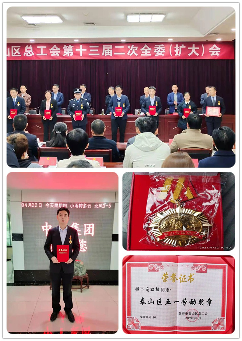 4月22日上午,泰山區(qū)總工會第十三屆二次全委(擴大)會議在泰山區(qū)文化大廈隆重召開。會上對泰山區(qū)“五一勞動獎章”獲得者進行了表彰,我單位馬昭鋒同志榮獲泰山區(qū)“五一勞動獎章”。